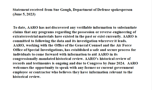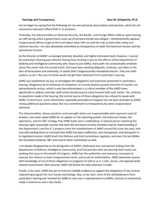 Q: Anything else you make of those [UAP] hearings on Capitol Hill?