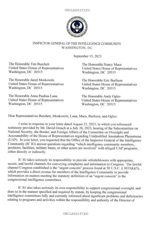 Rep. Luna: “Can you clarify whether the Department of Energy has been involved in any such efforts or either historically or currently to analyze reverse engineering materials from related to UAPs?”