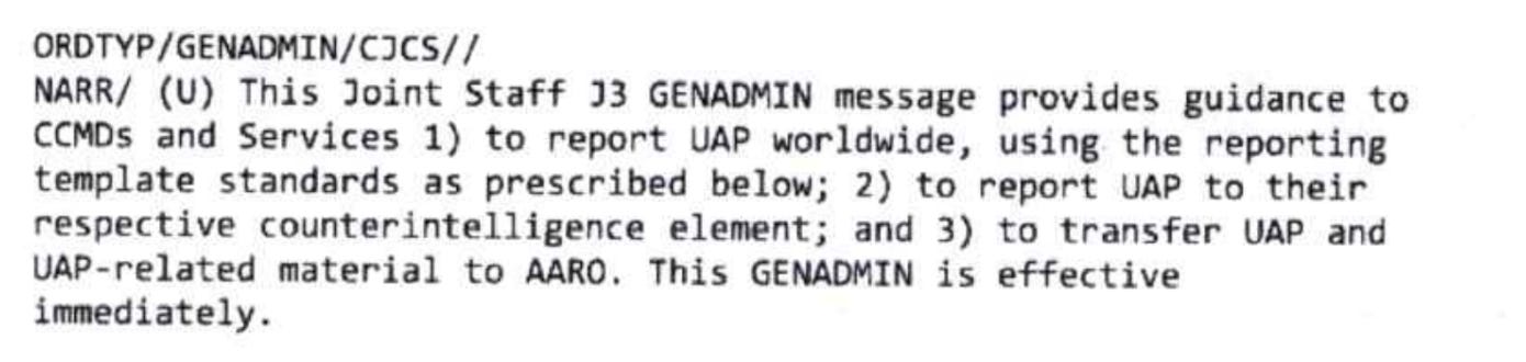 The President also instructed the Intelligence Community to take a broad look at the phenomenon of unidentified aerial objects.